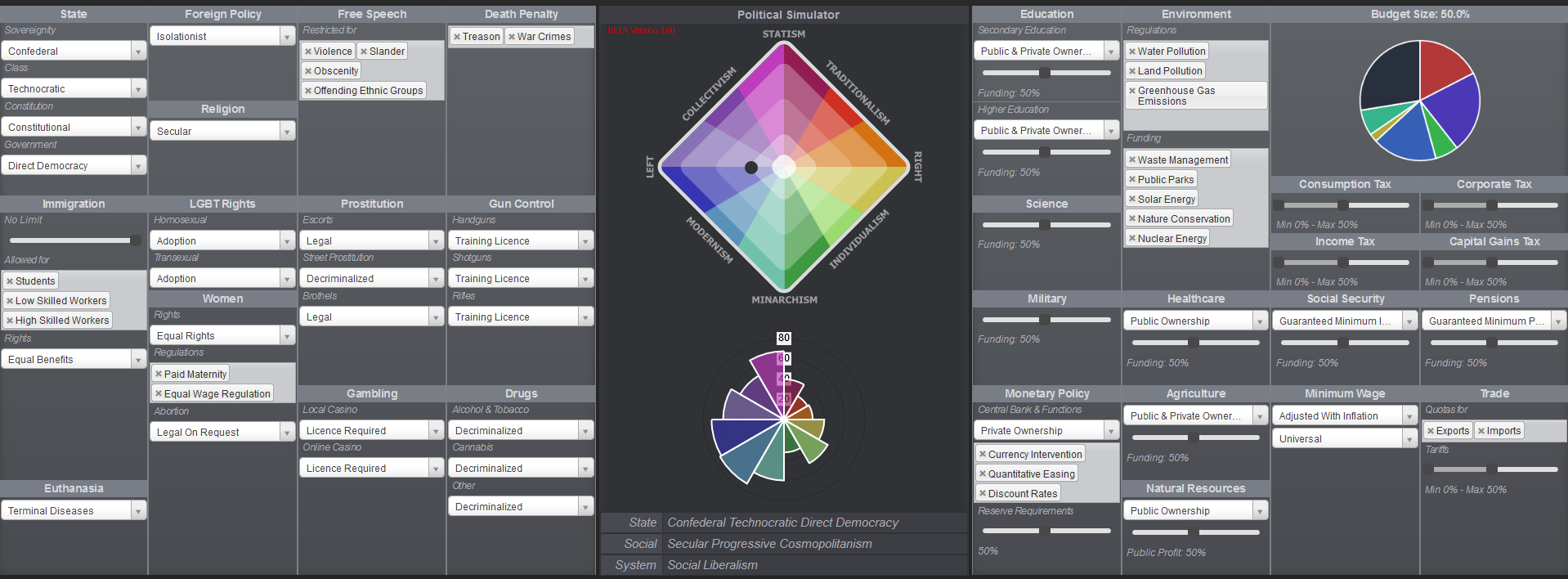 Wow, very intriguing topic, Austin. Thanks for posting this. It's sparked some interest from me to look into a few subjects a bit deeper than I'd normally think of, such as national budgeting and where exactly we stand at as a nation, and how other nations compare. But for this, I didn't know anything at all about equalising or rightfully distributing the budget so I put everything at 50%. No clue. The rest is as accurate as I could think of, in my views.